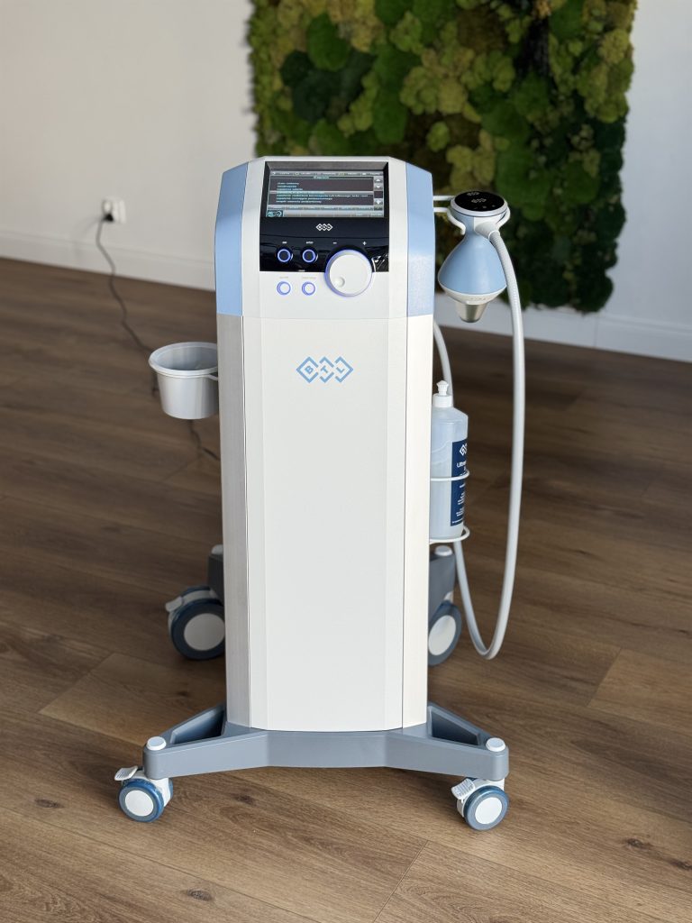 W moim studio pracuję na BTL 6000 FSWT Focused Shockwave – urządzeniu klasy medycznej stosowanym w klinikach ortopedii i rehabilitacji na całym świecie.